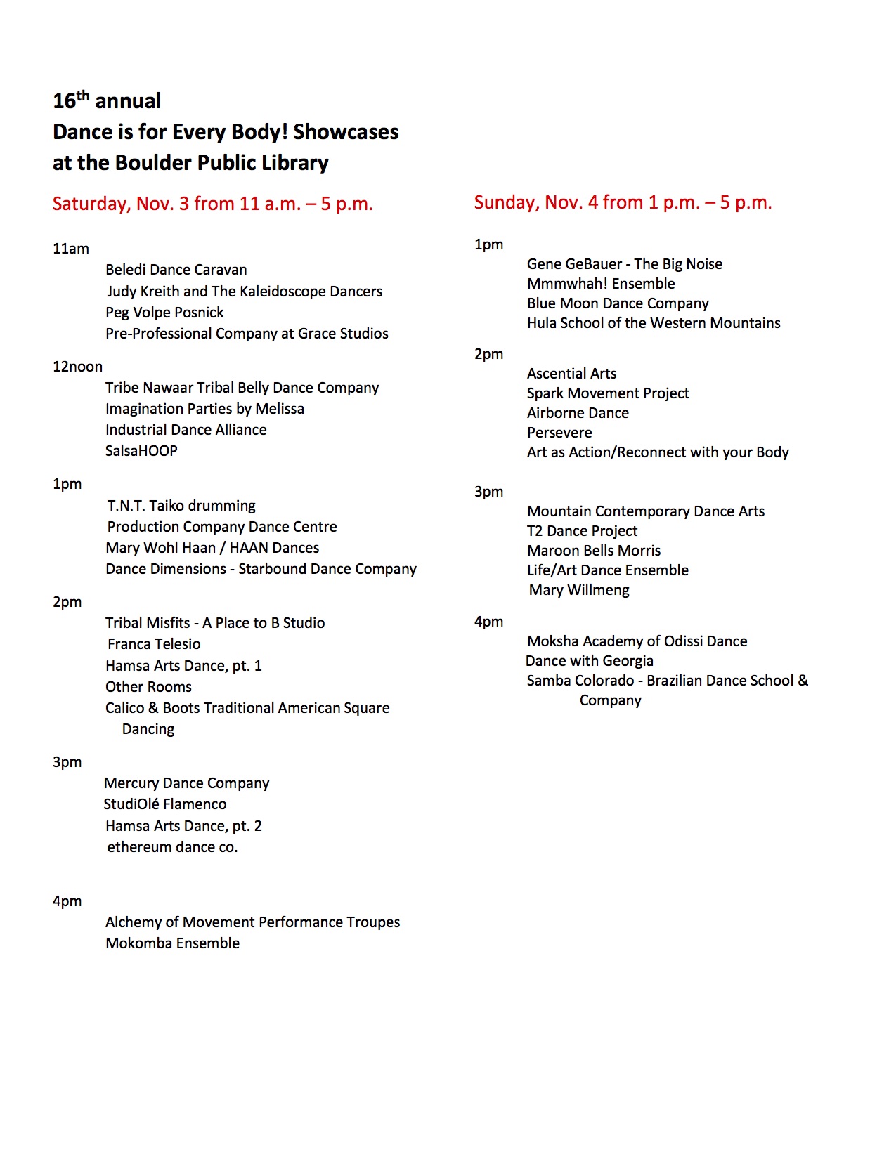 Every year, at this time, a variety of Boulder dance companies and studios come together to share their latest work. The presentations can be full performances, demos, lectures or a mix of the three. Each presenter has up to 15 minutes which keeps the audience engaged, informed and entertained.