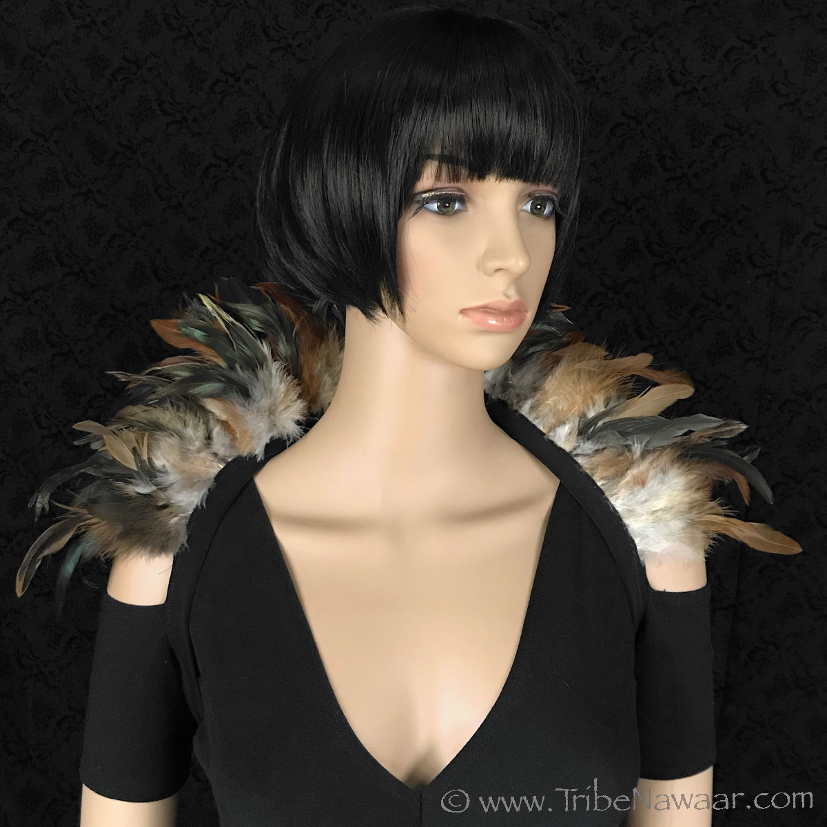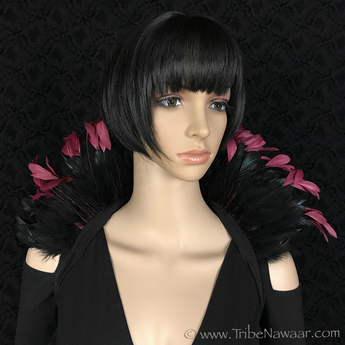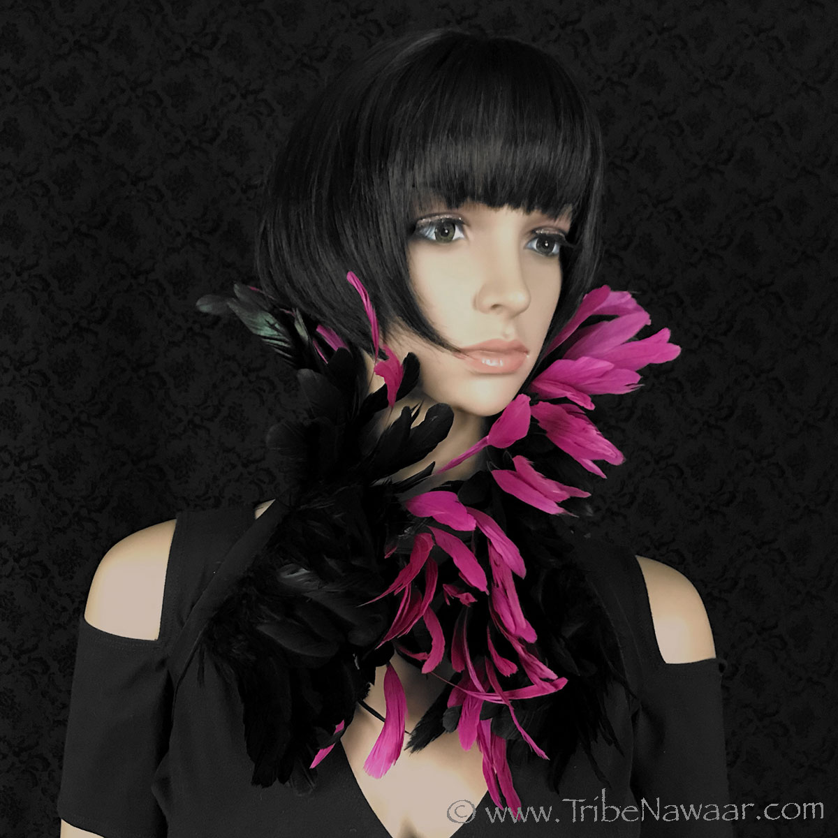 Tribe Nawaar's black premium theatrical feather collar, closed 'Victorian Collar' style
