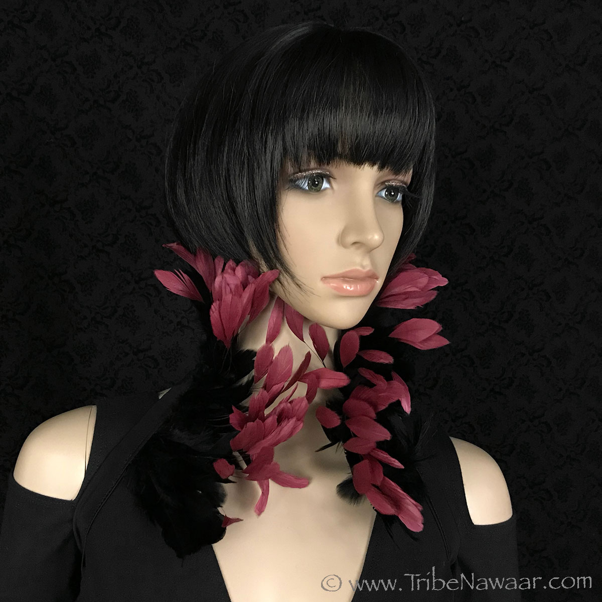 Tribe Nawaar's wine queen theatrical feather collar, closed 'Victorian Collar' style