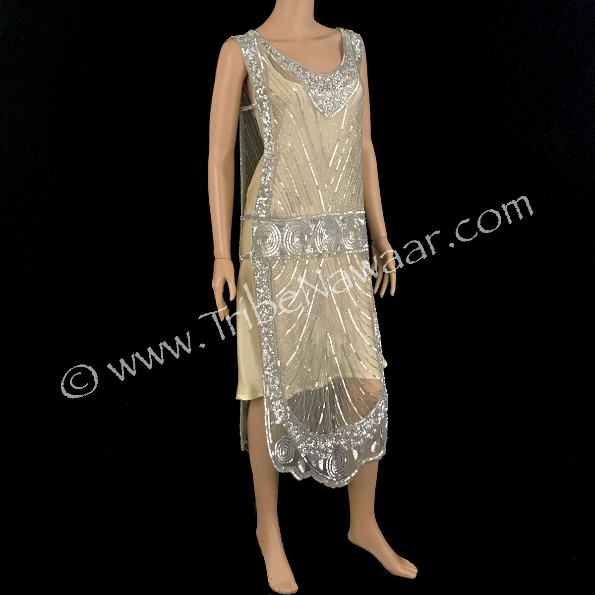 More About Our 1920s Silver Beaded & Sequined Tabard Panel Dress
