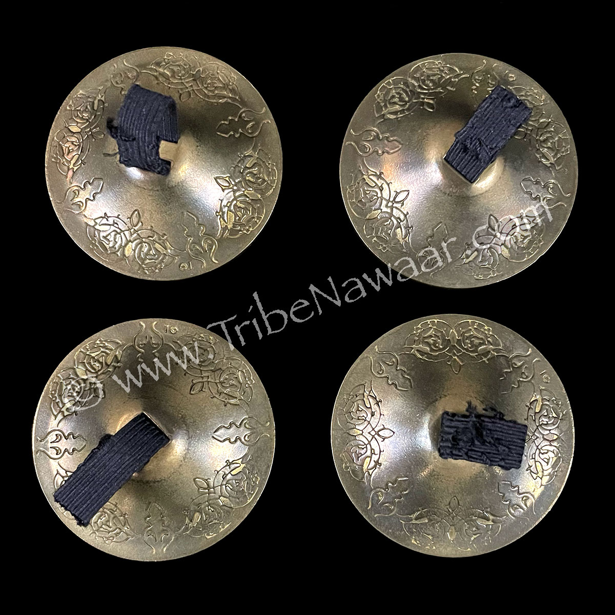 These 2 1/16″ brass oriental zils feature attractive detailing and an antique brass finish. Nice tone. Includes 4 zils with elastic and a drawstring pouch.