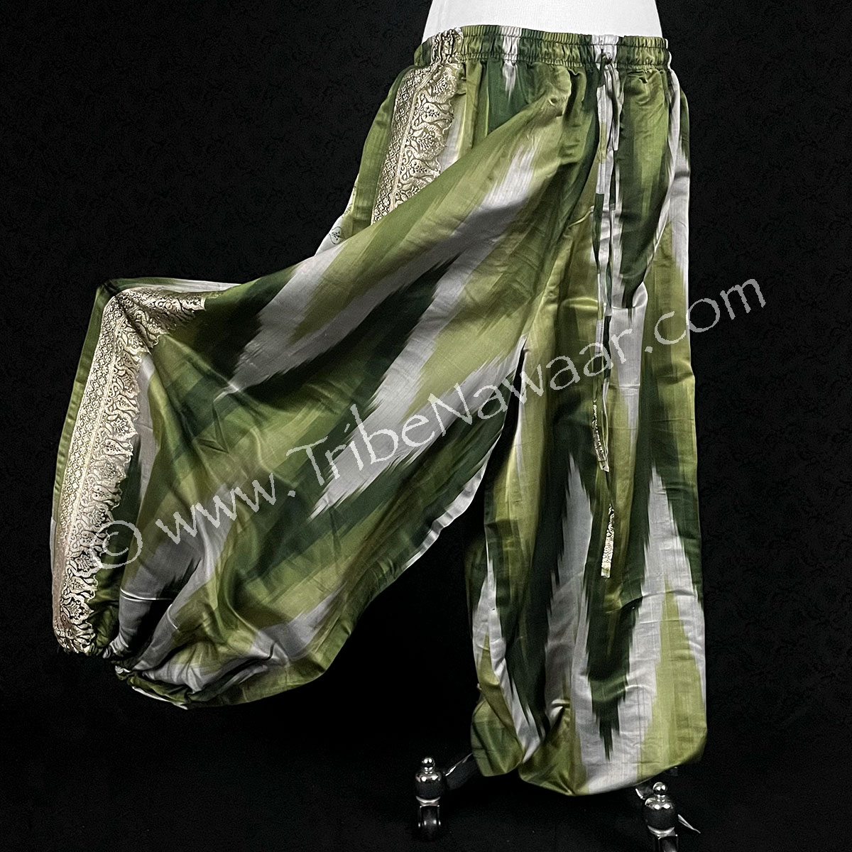 Our sariloons (aka vintage sari pantaloons, salawar or harem pants) are made of the most decadent and luscious upcycled fabrics available. A fabulous pant choice for all dance genres and all genders.. for stage work, street wear and everything in between!