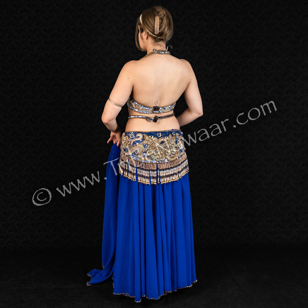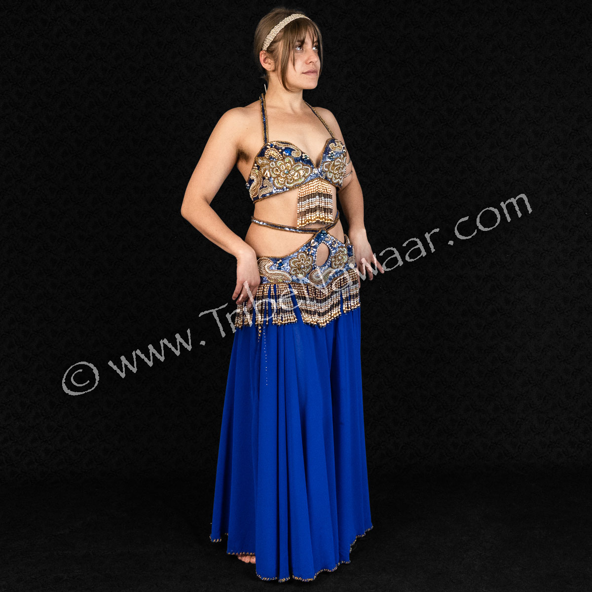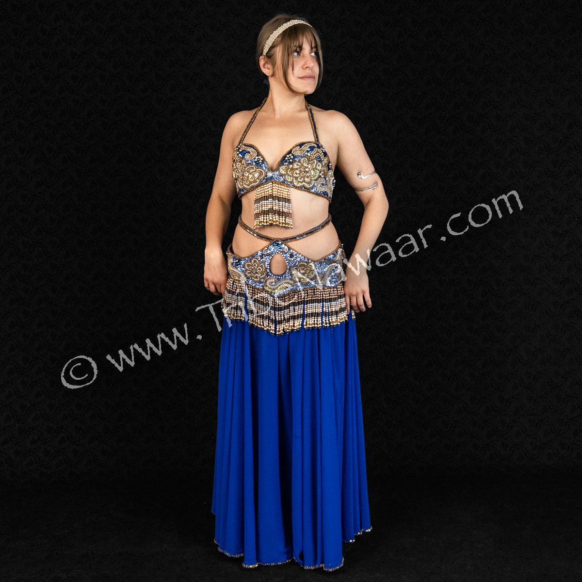 This professional quality Blue, Gold & Silver Egyptian Set has everything you need to take the stage in style! Includes lavish bra and belt, headband, chiffon skirt & veil.