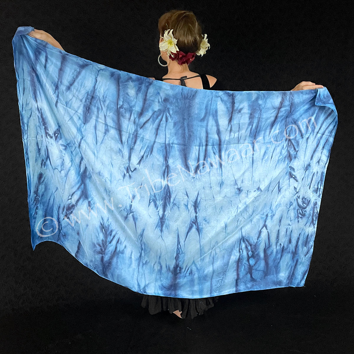 This veil is made of medium weight hand dyed poly fabric. Professionally finished edges. Rectangular veil can be used as a dance prop, light coverup or as a shawl.