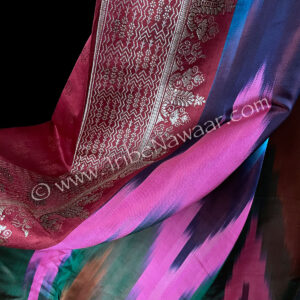 Our premium vintage sari fabric content is typically about 70% silk, 30% viscose. These upcycled fabrics are cleaned, pressed and custom tailored into our fabulous one of a kind pants. We’ve added a new soft lining to the inside of the waistband for maximum comfort. Sturdy new elastic with drawstring ties at the waistband and ankles.