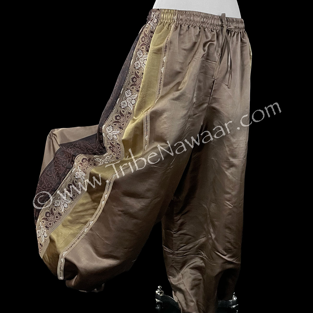 Chestnut Sariloons - eco chic upcycled belly dance pants (aka pantaloons or harem pants) available at the Nawaar Marketplace at www.TribeNawaar.com (detail)Fabric & Construction: