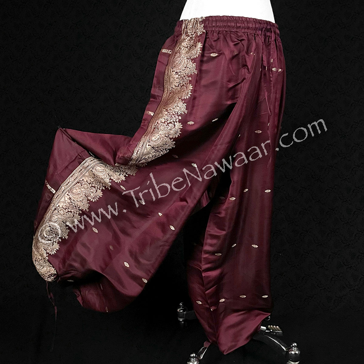 Our Iridescent Mulberry Sariloons feature beautiful environmentally-friendly upcycled vintage sari fabrics and the high quality construction you know and expect from our personal label. Each of these eco-chic pantaloons are unique and one of a kind, no two alike.