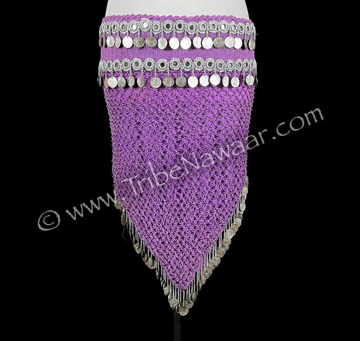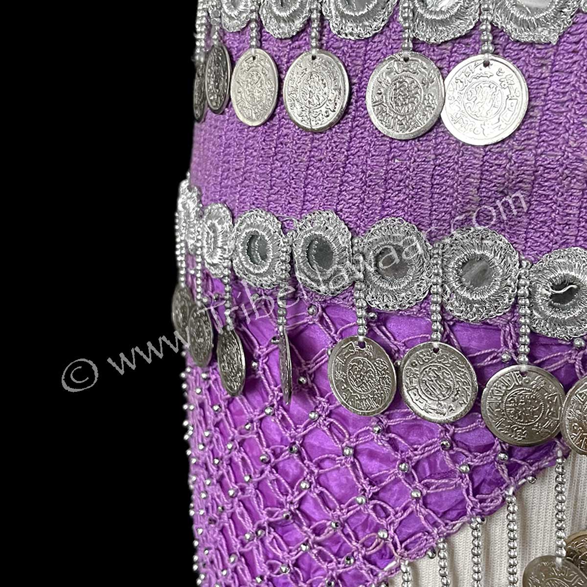 This lavender & silver Athena Hip Scarf features vibrant colors, a curve-hugging design and coin falls that accent movement with their melodic tone. Brand new from fellow costume supplier who is retiring from the business. Only 1 of each available. Don’t delay if you see one you love!