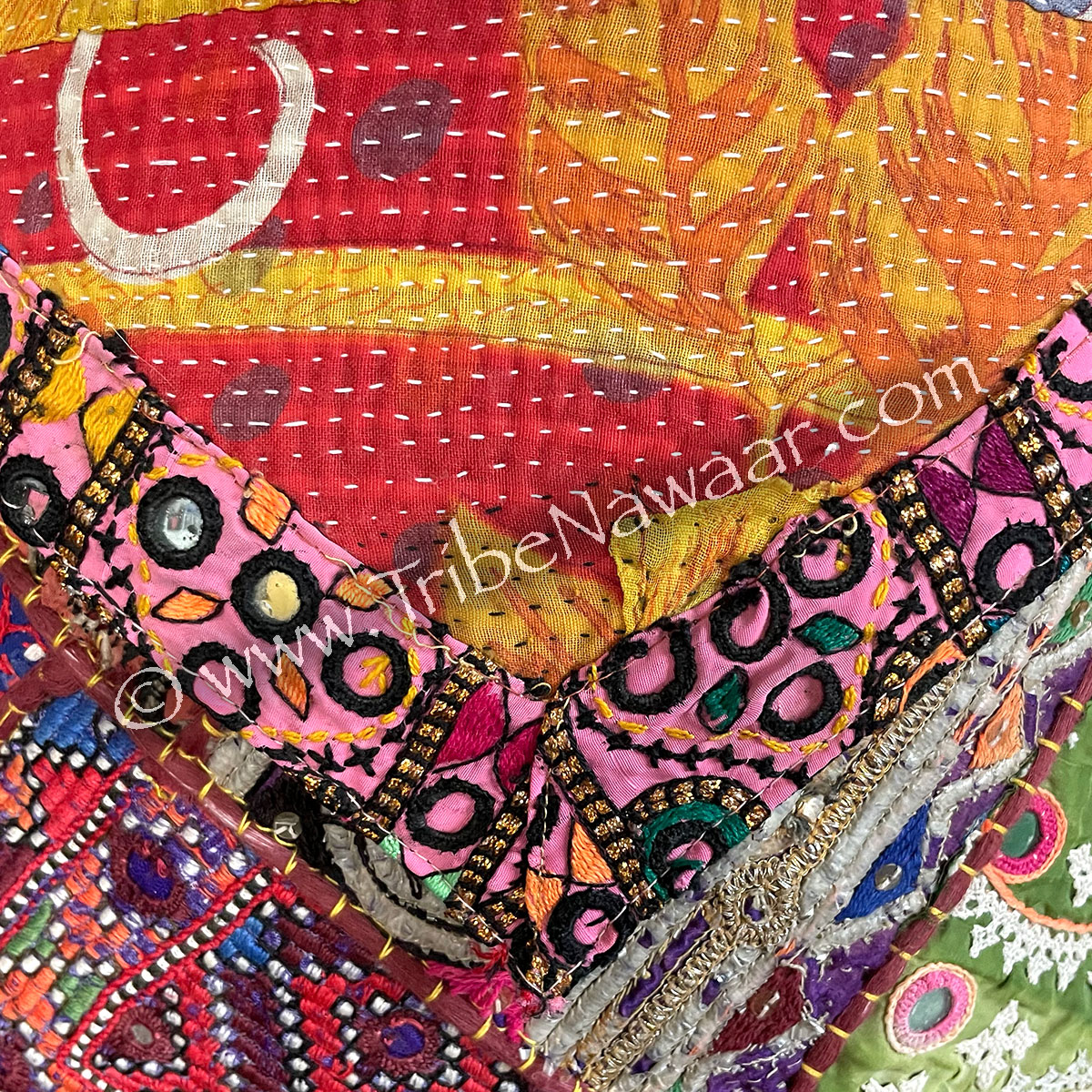 Created using elaborate vintage textiles to decorate the outside. All new materials in the lining and hardware add structure and stability. Made for long term enjoyment. Assembled using quality black interior cloth. Sturdy antique brass toned metal hardware.