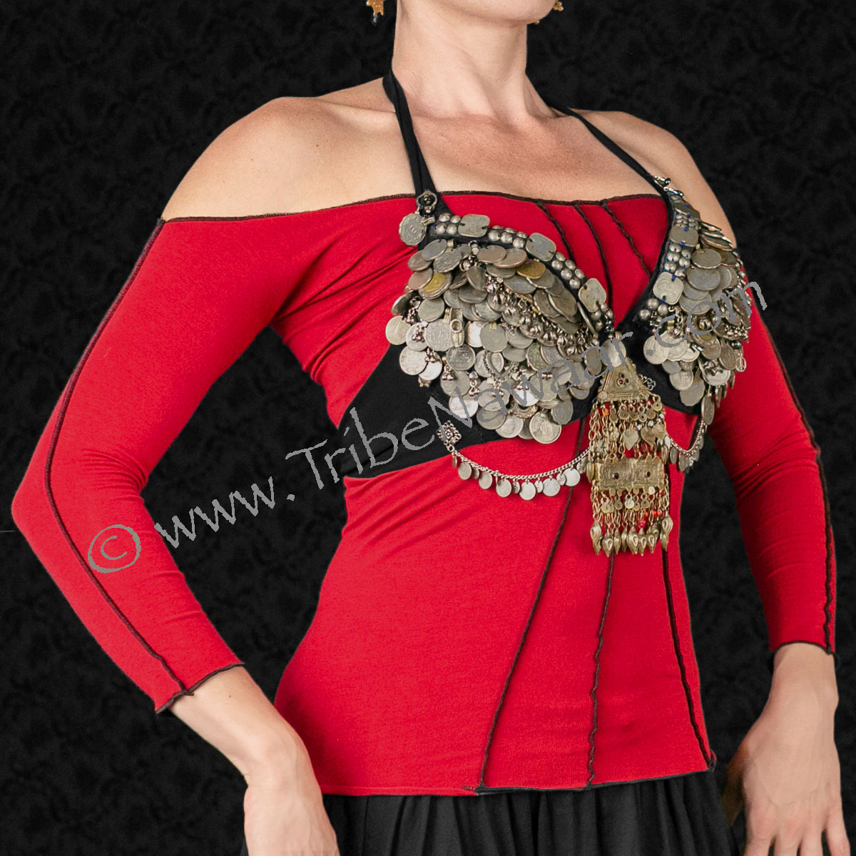This alluring dance top is cozy enough to wear as pajamas yet attractive enough to wear on stage! Pair this playful top with your coin bra for the perfect fusion dance performance top (coin bra not included). A great option when a belly cover is required.