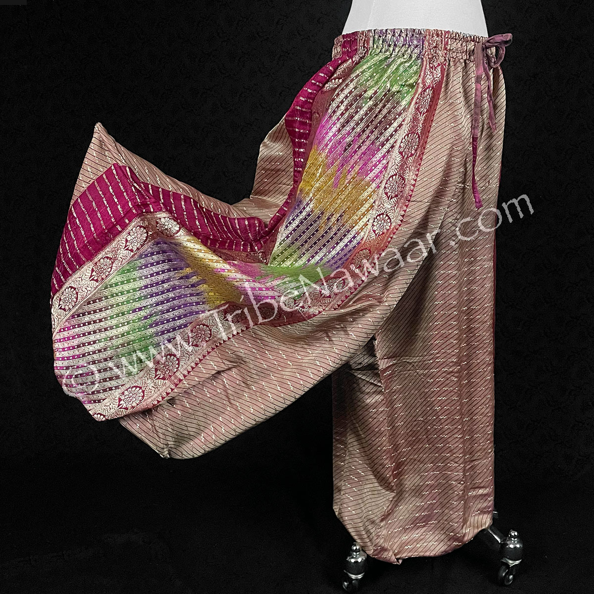 Our Rainbow Sariloons feature beautiful environmentally-friendly upcycled vintage sari fabrics and the high quality construction you know and expect from our personal label. Each of these eco-chic pantaloons are unique and one of a kind, no two alike.
