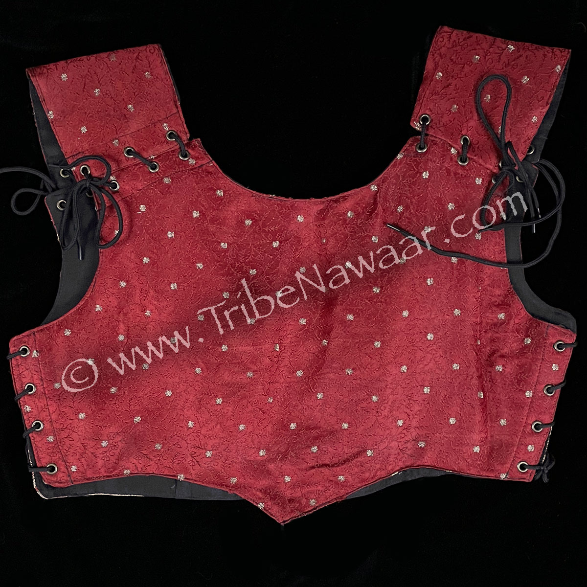 Our Regal Red corseted bodice top is made of the most decadent and luxurious up-cycled sari fabrics available. A fabulous choice for all dance genres and all genders.. for belly dance costumes, renaissance faire, medieval festivals, folkloric attire and more!