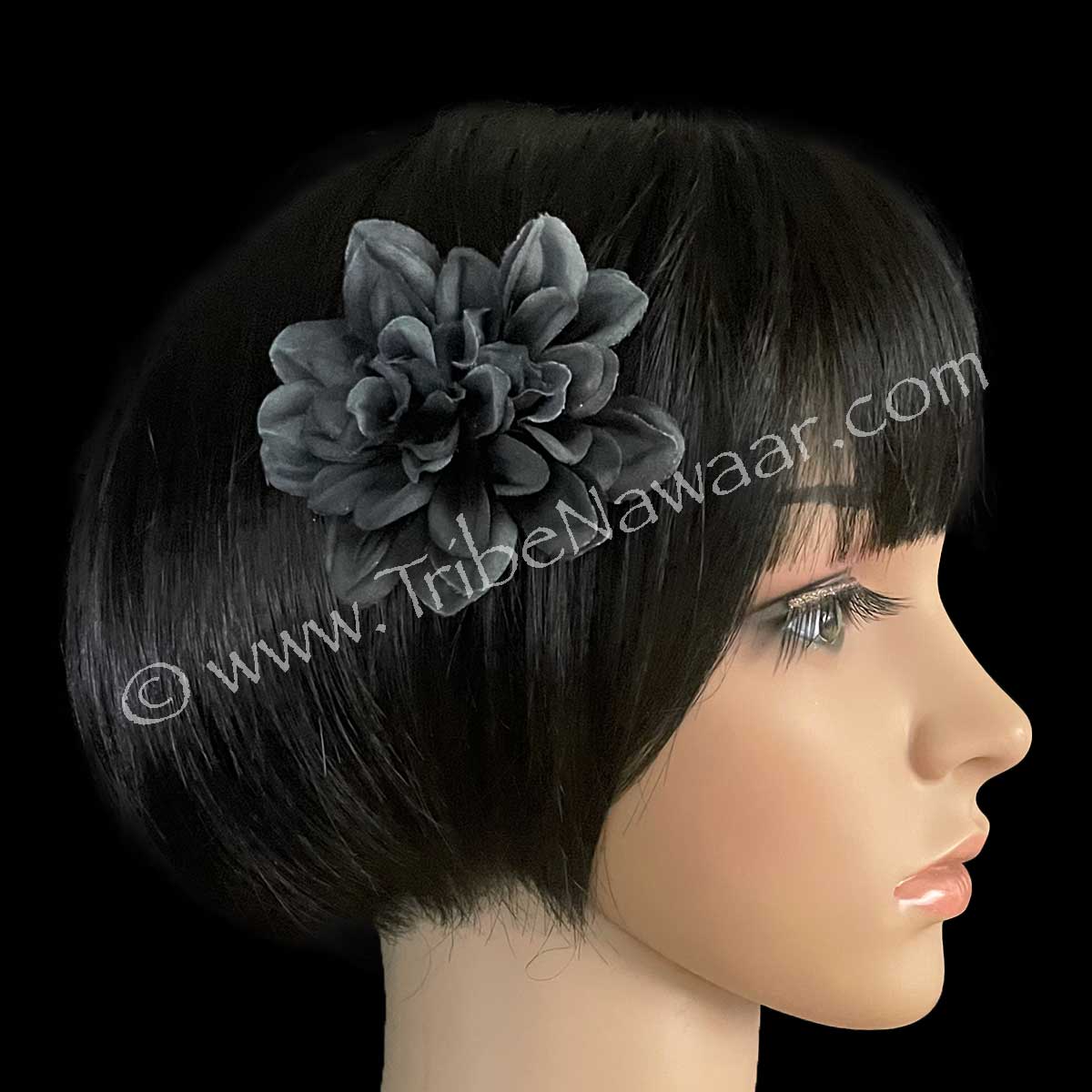 Charcoal black flower on a sturdy hair clip