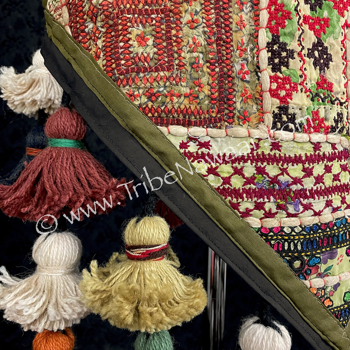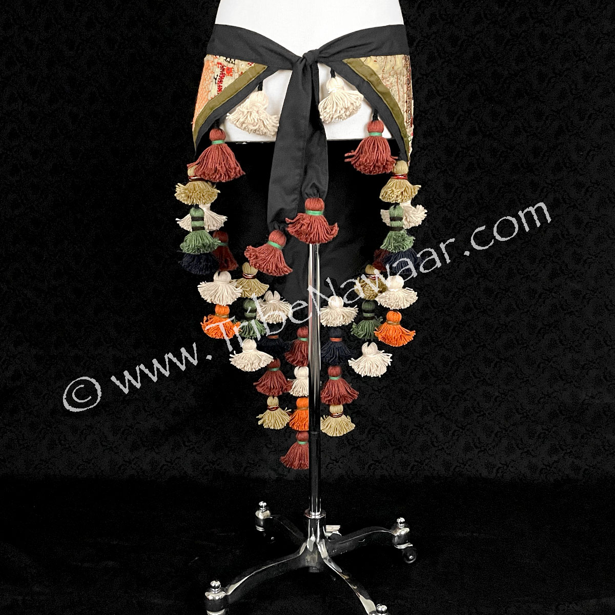Made right here in the Tribe Nawaar Studio. Each tassel is hand wrapped and then strung together to create assorted length falls.Strategically placed tassels exaggerate a belly dancer’s hip movements. All tassels are hand sewn onto the sturdy scarf base