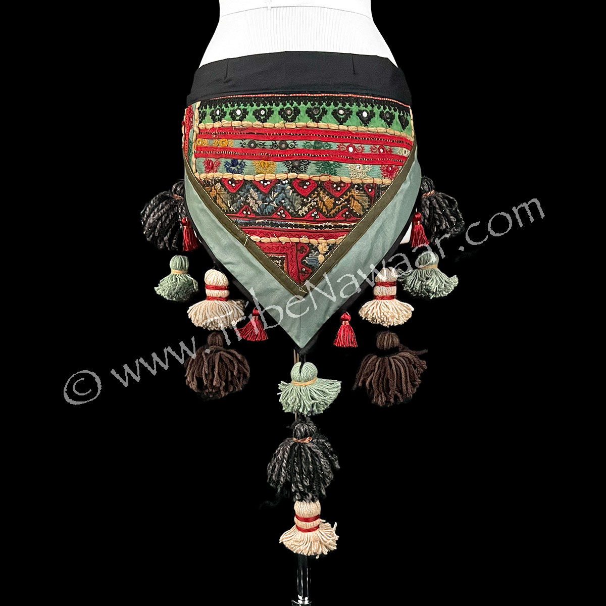 Mirrors and small rhinestones in textile base catch the light nicely. Strategically placed tassels exaggerate a dancer’s hip movements. A fabulous accent for classic ATS/FCBDstyle belly dance. Looks wonderful on all genders!