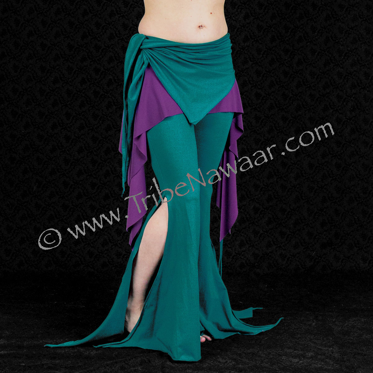 Made with comfortable 4 way stretch cotton lycra featuring a flared leg design with side slits and a sash that ties at the right hip. Pair perfectly with Rosehips Skirts (sold separately) when worn between the sash and pant and offer a great multilayered effect!
