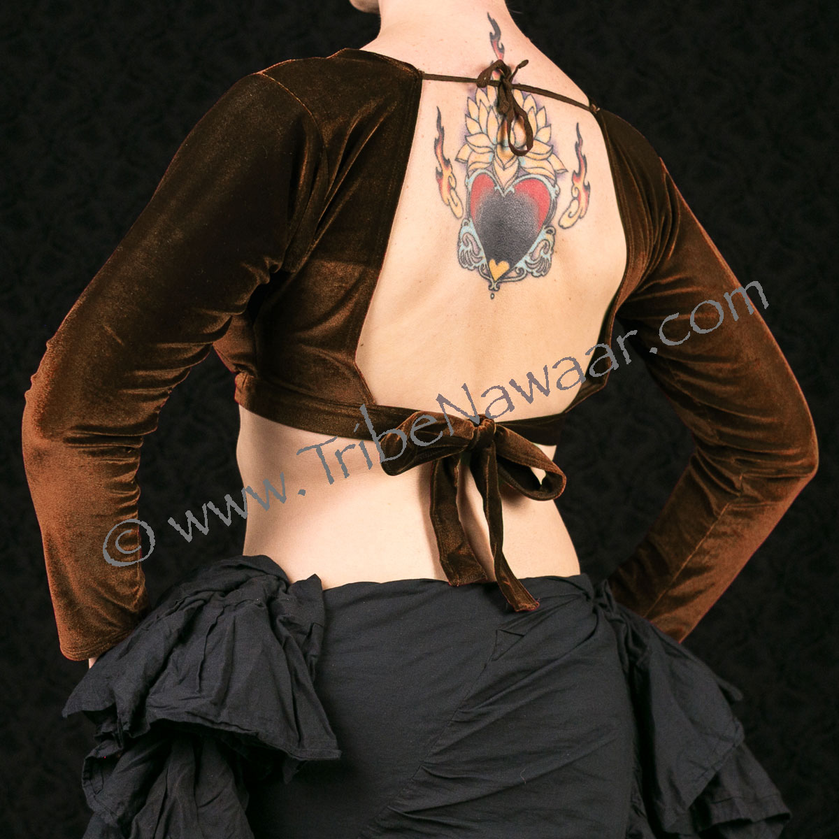 4 way stretch velvet fabric with long 3/4 sleeves design (depending on your arm length the sleeve will be between a 3/4 and a true long sleeve length).