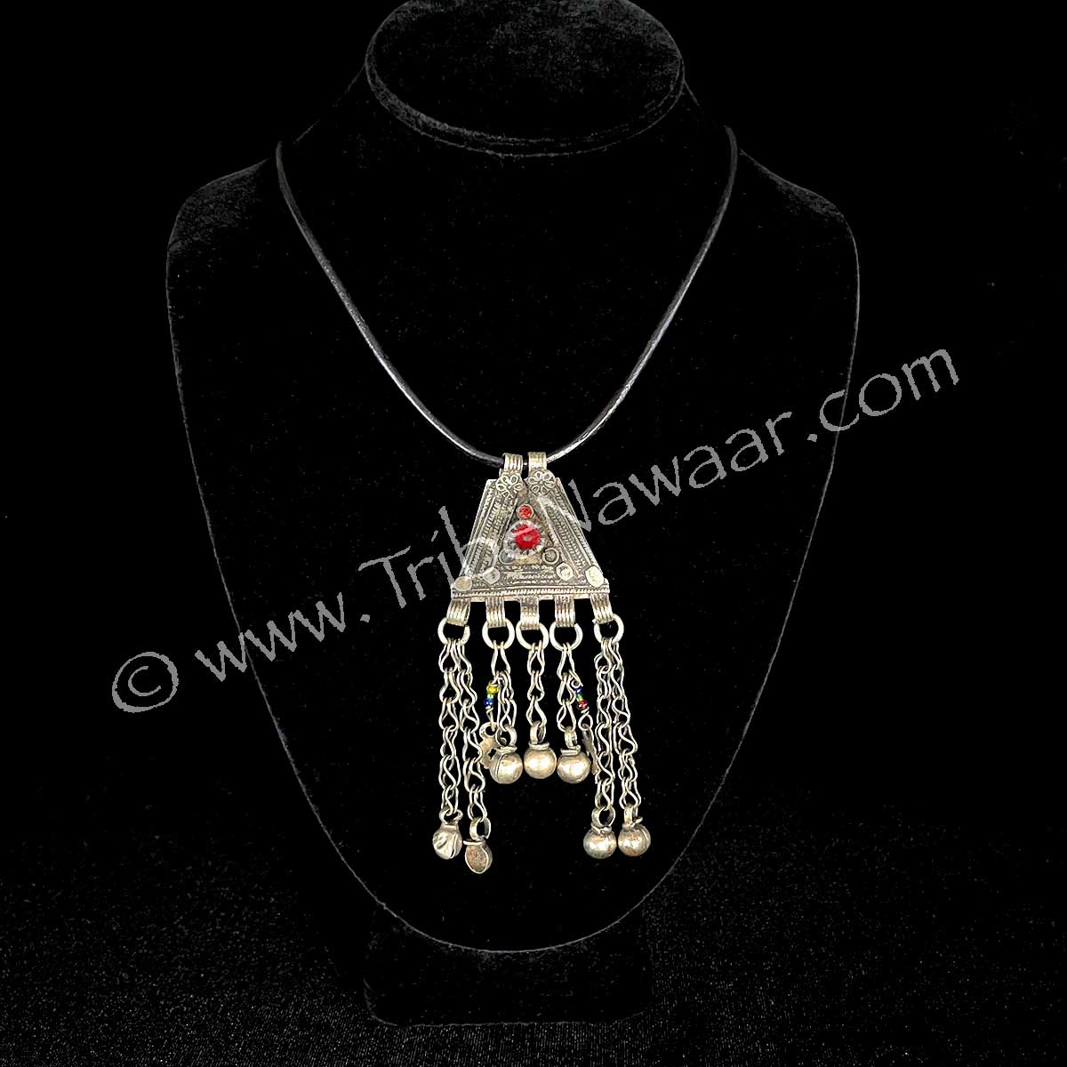 This traditional Kuchi pendant necklace 2 is a stellar example of the classic Pashtun design & detailing! Its belled falls add a beautiful melodic tone to shoulder shimmies and other chest articulations! Perfect for completing your dance look or worn with your everyday wardrobe.