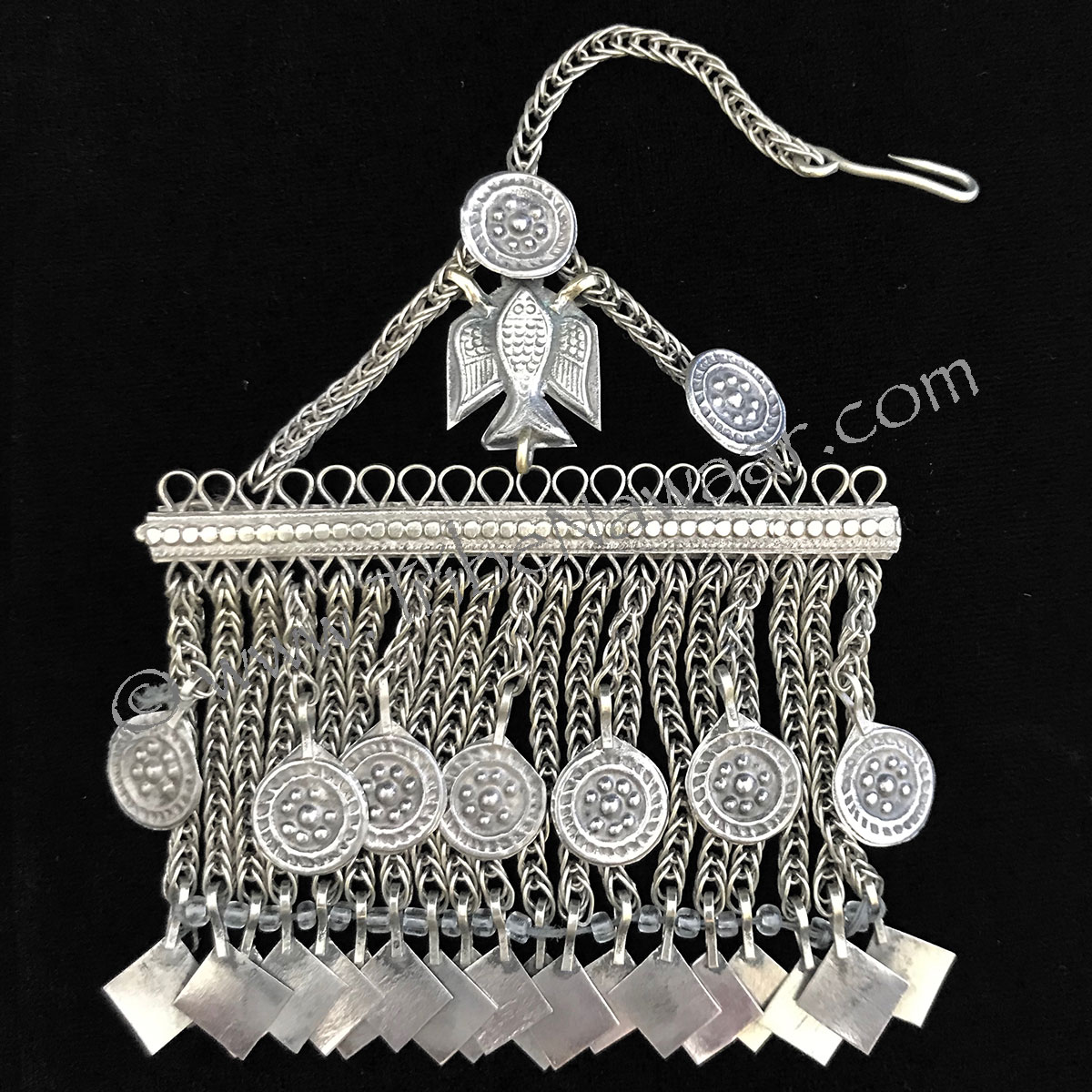 Our traditional tribal barrette q is from the Hazara tribes of Afghanistan. Wear it as a hair clip to complete your tribal style belly dance performance look or use it as a unique accent and statement piece for everyday hair styles wherever you go!