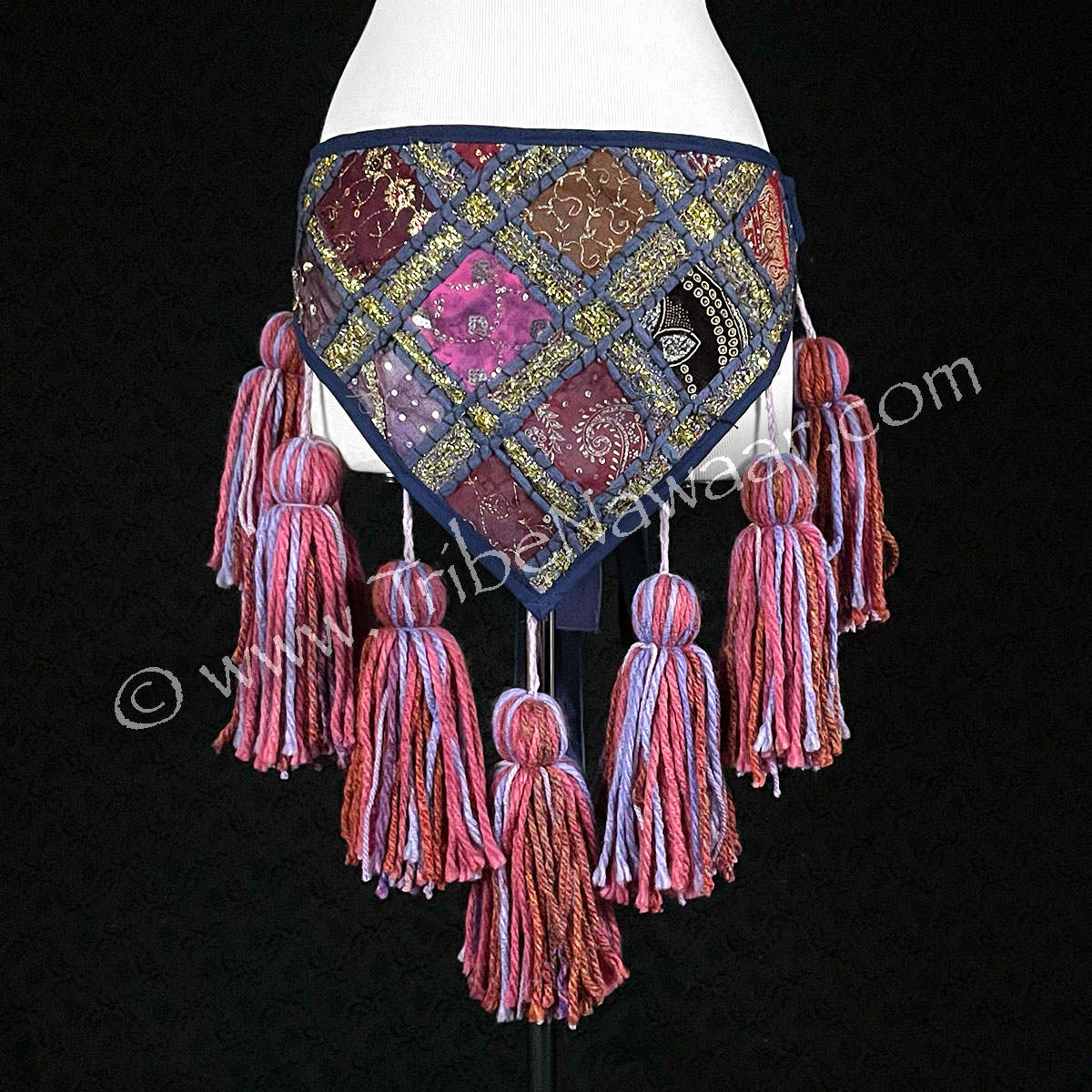 This Blue, Rose & Lavender Tassel Belt is playful and fun. Large tassels bounce and swing with movement. Great for accenting all your belly dance movements.