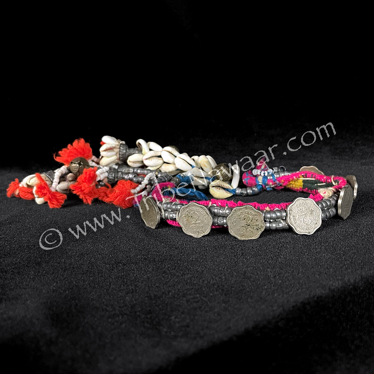 Vintage Coined Armband With Cowries & Orange Pops is an authentic tribal jewelry piece. These high quality vintage armbands are a much sought after jewelry element by belly dancers and ethnic jewelry collectors alike.