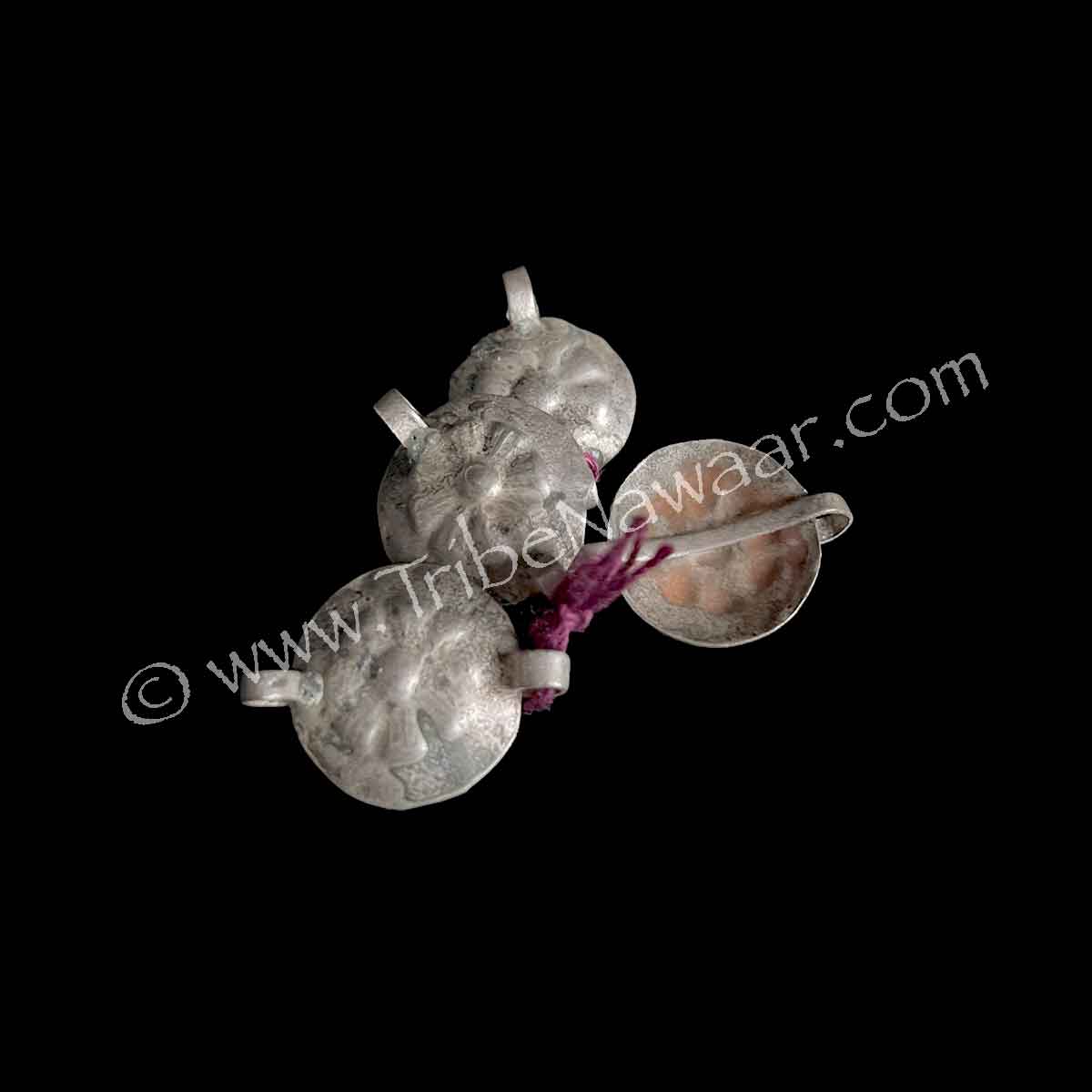 Authentic tribal jewelry making component. Embossed flower pattern at center. Vintage tone.